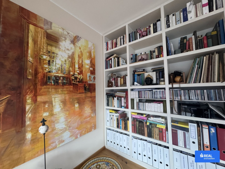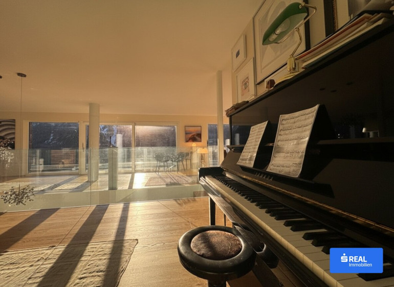 Hier spürt man die besondere Handschrift des Hauses: den warmen Charakter der Massivholzbauweise, die edle Haptik echter Holzfußböden und das Spiel des Lichts, das durch großzügige Glasflächen in jeden Winkel fällt. Modernste Technik fügt sich hier unaufdringlich in das Gesamtbild ein – von der leisen Fußbodenheizung über die effiziente Wärmepumpe mit Tiefenbohrung bis hin zur leistungsstarken Photovoltaikanlage. Dreifachverglaste Fenster mit integrierten Rollläden sorgen für angenehmes Raumklima zu jeder Jahreszeit.