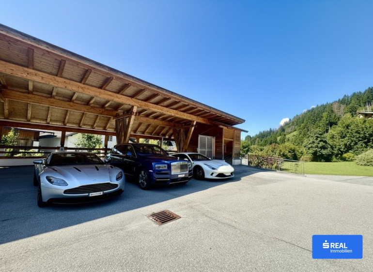 Fliesen, Parkett, Kamin, Einbauküche, Ostbalkon, Südbalkon, Westbalkon, Bad mit Fenster, Badewanne, Dusche, Carport, Garage, Sauna, Wasch/Trockenraum