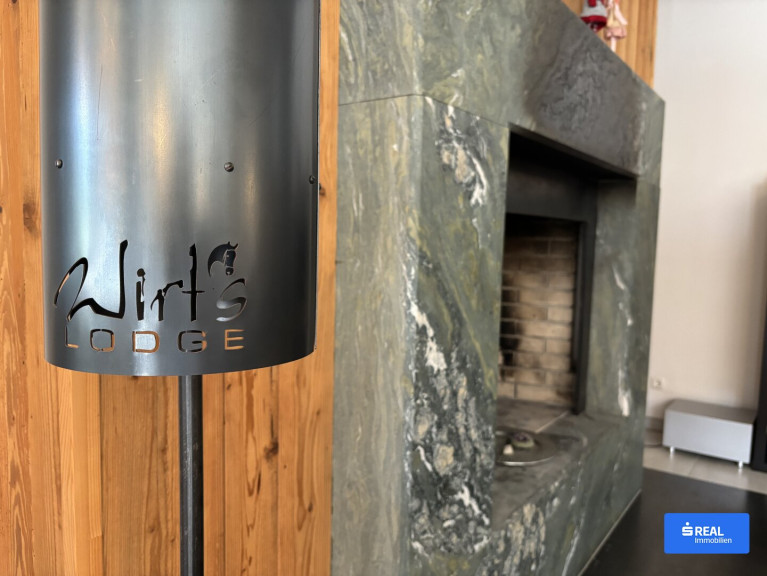Zwei Wohneinheiten – Erdgeschoss mit ca. 180 m², großzügigem Wohn-Essbereich mit Kamin, Terrasse (ca. 52 m²), drei Zimmern und Wellnessbereich mit Sauna.