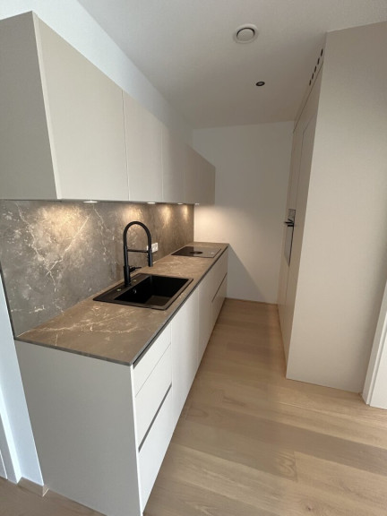 Die hochwertige und moderne DAN-Einbauküche ist in der monatlichen Miete bereits inkludiert. Die Elektro-Einbaugeräte (Backrohr, Kühl- u. Gefrierschrank sowie Geschirrspüler) wurden vom Vormieter eingebracht und sind vom neuen Mieter nach Vereinbarung abzulösen.