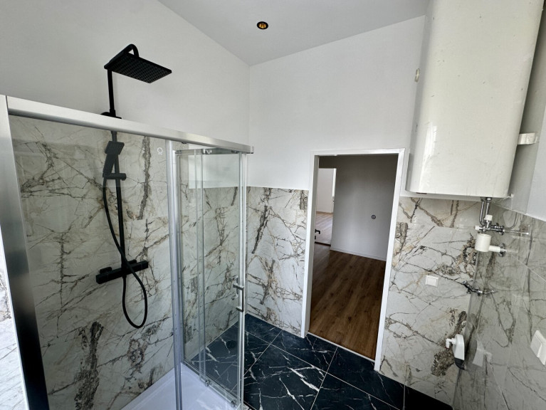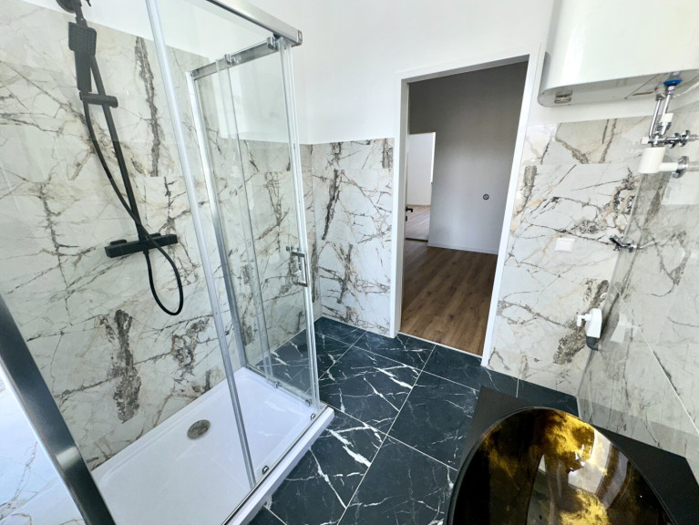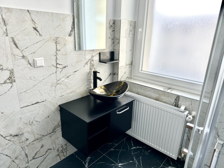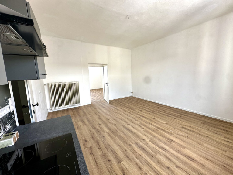 Die Wohnung wurde kürzlich modernisiert und überrascht mit einem harmonischen Zusammenspiel aus stilvollen Fliesen und warmem Laminat. Die Einbauküche ist nicht nur funktional, sondern ein echter Blickfang, der das Kochen zum Vergnügen macht. Die praktische Dusche sorgt für eine entspannte Atmosphäre und rundet das durchdachte Raumkonzept ab.