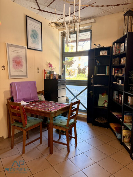 Im Inneren besticht das Lokal, das derzeit von einem Energetiker mit angeschlossenem Shop genutzt wird, mit vielen Fensterflächen, einer guten räumlichen Trennung verschiedener Funktionen sowie separaten Toiletten und einer Teeküche.