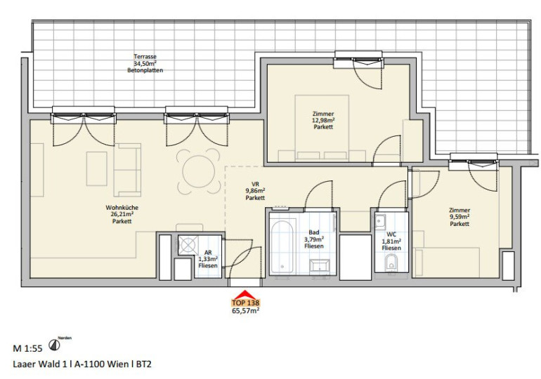 Öffentliche Verkehrsanbindung - Buslinien: 68A, 68B, N68 - S-Bahn: Wien Grillgasse - Straßenbahn: Linie D Nahversorgung & Umfeld: - Böhmischer Prater - Supermarkt - DM Drogerie - Bäckerei Anker - Kindergarten
