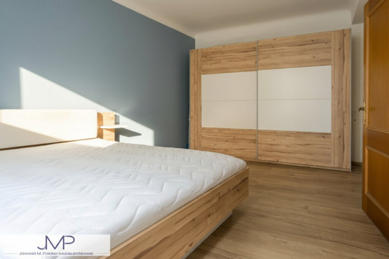 Sie besteht aus einem Vorraum, einem großen Wohnzimmer, sowie einem sehr geräumigen Schlafzimmer, das über das Wohnzimmer erreichbar ist. Weiters gibt es eine gut erhaltene Küche, ein Duschbad und ein davon getrenntes WC.