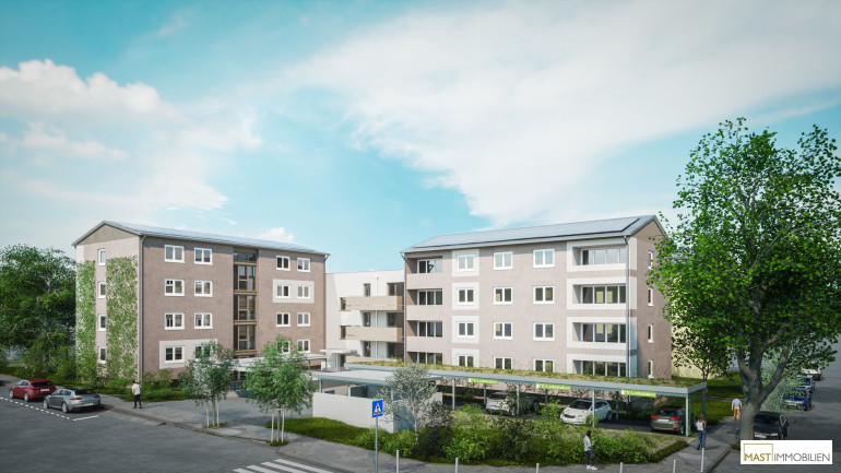 Zum Verkauf stehen 10 freifinanzierte Erstbezugswohnungen. Außerdem stehen auf der Liegenschaft zwei Bestandshäuser mit insgesamt 16 Wohnungen.