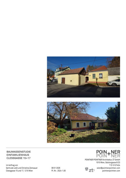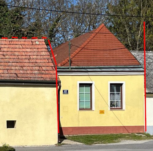 Alternativ könnte das bestehende Wohnhaus saniert werden und mit einem Aufbau versehen werden. Der Altbestand besteht aus Vorraum, WZ, Küche Schlafraum, Sanitärbereich und einem Lagerraum mit Werkstätte. Die Widmung erlaubt einen Dachgeschossausbau und/oder eine Teilverbauung des Gartens. Da das Objekt nicht unterkellert ist, erscheint ein Neubau sinnvoller als eine Sanierung.
