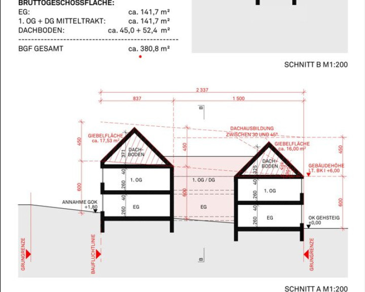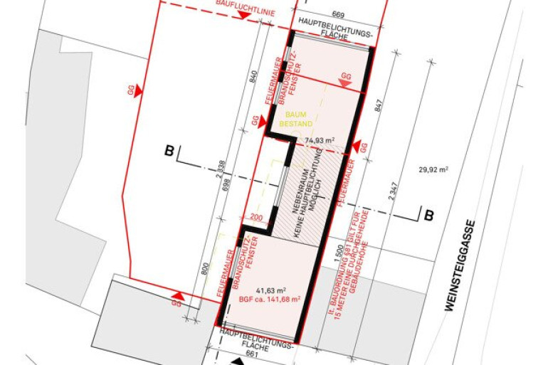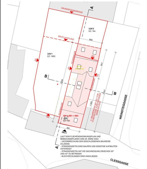 Zu empfehlen ist hier ein Neubau. Die erzielbare Nettonutzfläche beträgt ca. 210m² plus weitere ca. 90 m2 im Dachgeschoss. Attraktive Gestaltung mit zwei Baukörpern und einem Verbindungselement.