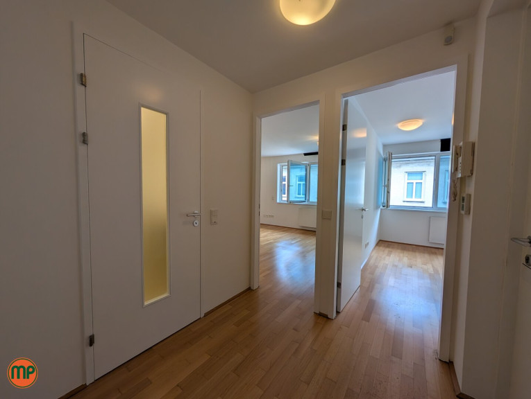 Dank der großzügigen Fensterflächen wird die Wohnung Tag für Tag von natürlichem Licht durchflutet und schafft eine besonders angenehme Wohnatmosphäre. Der helle Parkettboden verstärkt diesen freundlichen, einladenden Charakter zusätzlich. Sämtliche Räume sind separat vom Vorzimmer aus begehbar und überzeugen durch eine durchdachte, praktische Raumaufteilung. Die voll ausgestattete Küche ist in einer geräumigen Nische im Wohnbereich integriert und ermöglicht trotz offener Gestaltung eine klare optische Trennung zwischen Kochen und Wohnen. Das modern gestaltete Badezimmer mit großflächigem Spiegel und stilvollen Holzelementen rundet das Gesamtbild harmonisch ab. Ein eigenes Kellerabteil bietet zusätzlichen Stauraum und sorgt für weiteren Komfort.