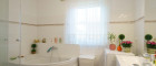 Fliesen, Laminatboden, Fußbodenheizung, Kamin, Zentralheizung, Einbauküche, Wohnküche / offene Küche, Südbalkon, Bad mit Fenster, Badewanne, Dusche, Garage