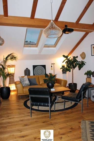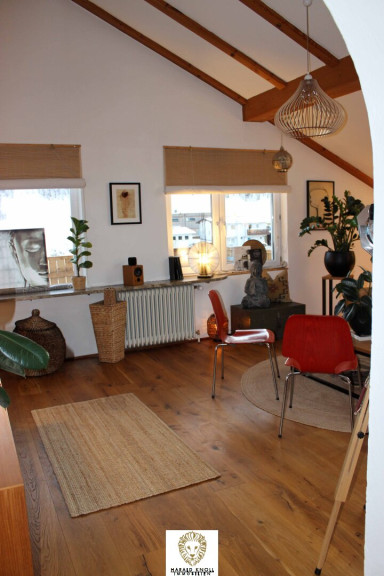 - 2017: Edles Eichenparkett (Schlossdiele) im Dachgeschoß, zwei große Dachfenster im offenen Wohnzimmer, stilvoller Kaminofen Haas & Sohn