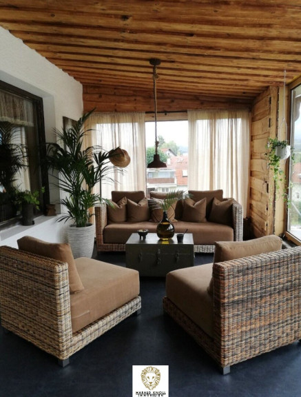 - Im 1. Obergeschoß befindet sich eine ca. 135 qm große Wohnung (großteils noch zum Sanieren mit Veranda und Terrasse)