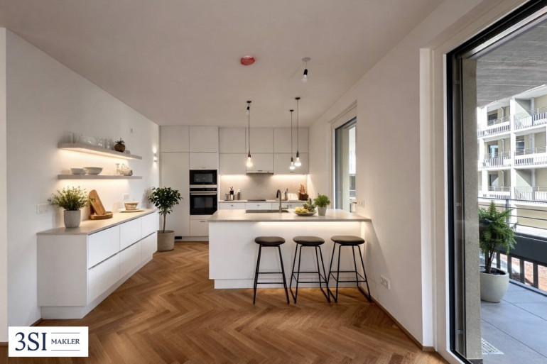 Diese exklusive 4-Zimmer-Wohnung verbindet modernes Design mit erstklassigem Wohnkomfort. Die lichtdurchflutete, offen gestaltete Wohnküche mit direktem Zugang zum Balkon schafft ein großzügiges Raumgefühl und bildet den Mittelpunkt des Wohnens.