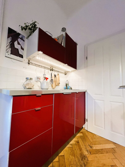 Die Böden bestehen aus hochwertigem Fisch-Grätparkett aus Echtholz und passen hervorragend zu den stilvollen Innentüren aus Massiv-Holz in Kassetten-Optik, welche der hellen 2-Zimmerwohnung diesen exklusiven Charme verleihen. Zudem gibt es noch ein gepflegtes Badezimmer mit Dusche, WC und Waschmaschinen-Anschluss sowie eine praktische Küche mit Geschirrspüler, Kühlschrank, Backofen und Herd. Neben dem Vorzimmer und den großzügig geschnittenen Zimmern gibt es noch ein ca. 14m² großes Kellerabteil als zusätzlichen Stauraum.
