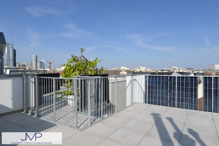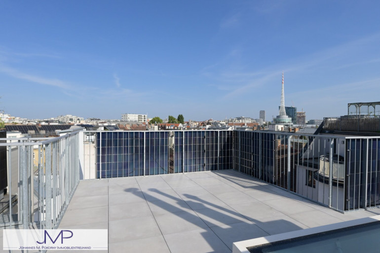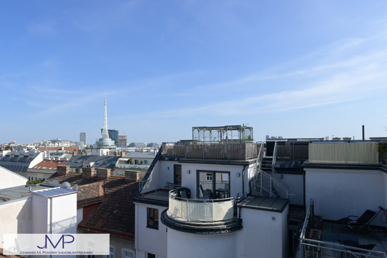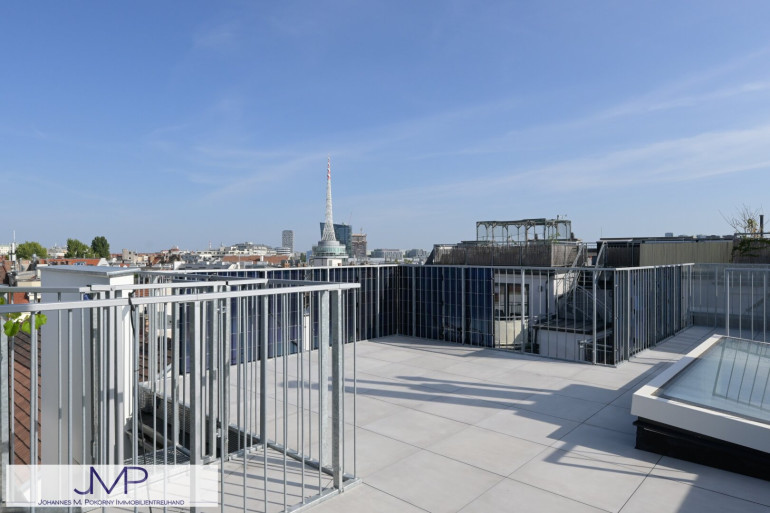 Ein Highlight der Wohnung ist neben der Ausstattung sicher die Dachterrasse. Sie ist ca. 34,65m² groß und bietet einen seltenen und schönen 360° Rundumblick über die Stadt.