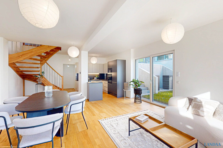 Großzügige Fensterflächen, helle Räume und private Gärten schaffen ein offenes Wohngefühl mit Blick ins Grüne. Die Architektur ist klar und modern, gleichzeitig warm und alltagstauglich – gemacht für Menschen, die Ruhe suchen, aber nicht abgeschieden leben möchten.