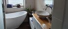 Es ist eine Fußbodenheizung und in einem Raum eine zusätzliche Wandheizung vorhanden.