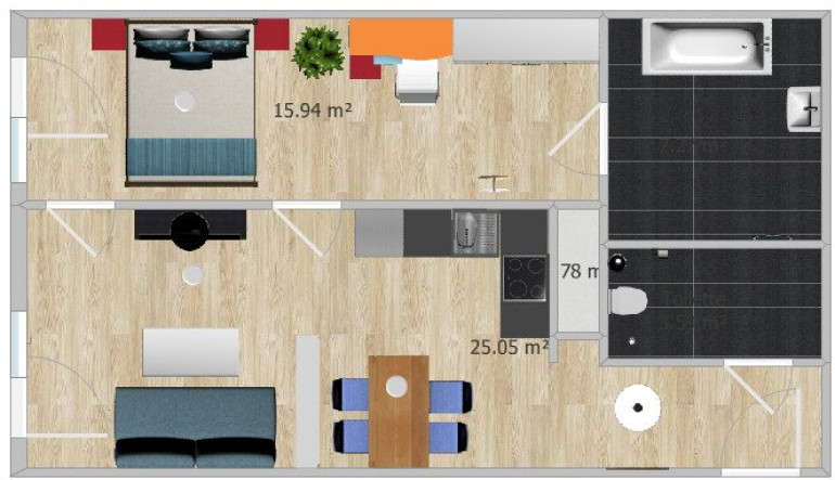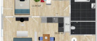 Es erwartet Sie ein Vorzimmer mit Garderobenbereich und Sicherheitstür, ein Wohnzimmer mit offener Küche, welche ist mit allen Geräte (Herdplatte, Backoffen, Kühlschrank mit Gefrierfach, Geschirrspüler, Dunstabzug, etc.). Im Wohnzimmer befindet sich ein 120 zoll Fernseher, eine Couch mit Couch-Tisch, Esstisch mit Stühlen, Klimaanlage, etc.