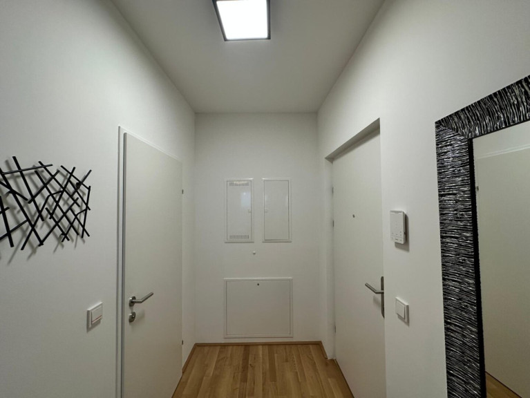 Die Wohnung verfügt über einen hochwertigen Parkettboden in den Wohn- und Schlafräumen und zeitlose Fließen in den Nassräumen.