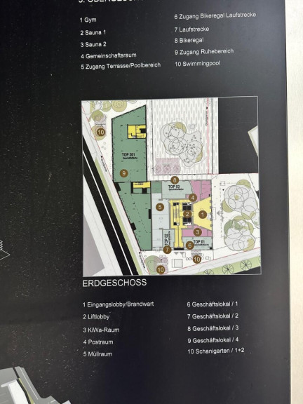 Sicherheitsdienst in der Lounge, 24 Std Online Store im Haus (marktzeit.at), ebenso Restaurants im Block, ein best ausgestattetes privates Fitnesscenter, ungestörte Tartan Laufstrecke (400m) im Aussenbereich, Sauna, verschiedene Lebensmittelgeschäfte und eine Shoppingmall in direkter Umgebung.