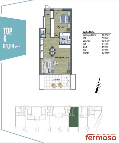 diese charmante 2-Zimmer-Wohnung mit ca. 68,84 m² Wohnfläche überzeugt durch eine durchdachte Raumaufteilung und einen großzügigen Eigengarten mit ca. 30,88 m² – ideal für alle, die urbanes Wohnen mit privater Freifläche verbinden möchten.
