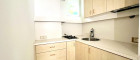 Die integrierte Küchennische ist funktional gestaltet und mit allen notwendigen Elektrogeräten ausgestattet.