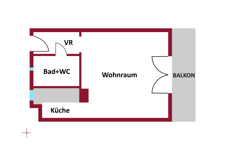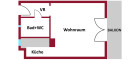 Die Flächen der 1-Zimmer-Wohnung gliedern sich in: