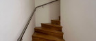 - ein Vorzimmer mit ausreichend Platz für eine Garderobe samt Schrank und Zugang zum Obergeschoß über eine hochwertige Holztreppe mit Edelstahlhandlauf sowie eine Gäste-Toilette mit Handwaschbecken und Fenster.