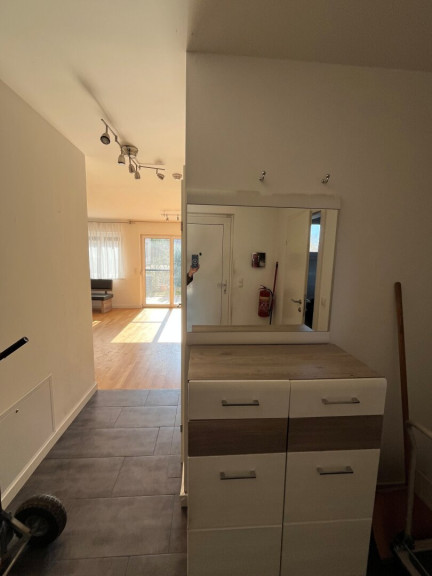 Ausgestattet mit Toilette, Dusche und Badewanne erfüllt es sowohl den Wunsch nach schneller Erfrischung als auch nach entspannenden Wellness-Momenten. Verflieste Wände sorgen für eine hochwertige, pflegeleichte Optik, während das Fenster den Raum mit viel natürlichem Licht durchflutet und ein angenehmes Raumklima schafft. Ein moderner Handtuchheizkörper garantiert jederzeit warme, griffbereite Handtücher. Zusätzlich steht ein praktischer Waschmaschinenanschluss zur Verfügung.