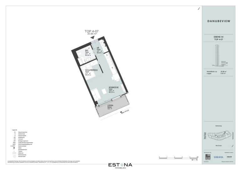 DANUBEVIEW bietet insgesamt 159 Mietwohnungen mit Flächen von 30 m² bis 150 m² und 1 bis 4 Zimmer. Die Grundrisse der Wohnungen gestalten sich offen und lichtdurchflutet. Mit großzügigen Fensterfronten schaffen diese ein freies Raumgefühl mit herrlichem Ausblick auf die Neue Donau und die Wiener Innenstadt. Durchdachte Außenplätze mit einem ansprechenden Landschaftsdesign verbinden sich zum persönliche "art of living" Lebensmittelpunkt. Zusätzlich lassen sich private Arbeitsplätze im Haus anmieten.