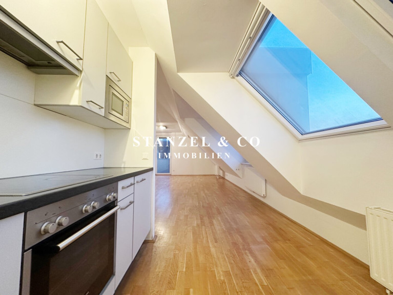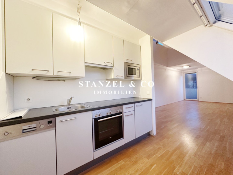 Vom 3m² großen Vorzimmer gelangt man in das sonnige, südseitige 35m² Wohnesszimmer mit offener Küche und anschließender 6m² großer Südterrasse. Die Küche ist mit einem Ceranfeld, Backrohr, Dunstabzug, Mikrowelle, Geschirrspüler und einem Kühlschrank + Gefrierfach ausgestattet. Das Schlafzimmer ist 12m² groß und verfügt ebenfalls über einen Zugang zur schönen 6m² großen, südseitigen Terrasse. Vom Wohnzimmer gelangt man über eine Treppe auf die 11m² große Galerie, die als Arbeitsbereich genutzt werden kann und zur anschließenden 8m² großen Südloggia.