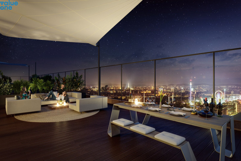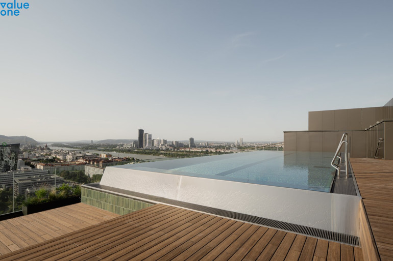 - Dining Area und großzügige Terrassenflächen mit Wienblick