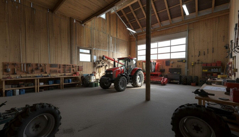 Lagerhalle 2 (103,8 m²): Aktuell als Stellfläche für Landwirtschaftsmaschinen (Mähdrescher/Traktoren) genutzt.