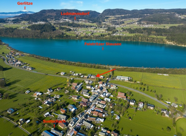 Lagebeschreibung: Wohnen, wo Kärnten am schönsten ist – Suetschach im Rosental Die Liegenschaft befindet sich in der idyllischen Ortschaft Suetschach, eingebettet in die malerische Gemeinde Feistritz im Rosental. Hier verbindet sich absolute Naturruhe mit einer hervorragenden Infrastruktur und der Nähe zu den Kärntner Zentren. Wer die Kombination aus alpiner Kulisse, kristallklaren Seen und urbaner Erreichbarkeit sucht, wird hier fündig. 1. Urbane Nähe & Städte in der Umgebung Trotz der ländlichen Idylle sind Sie bestens an das städtische Leben angebunden. Die Landeshauptstadt Klagenfurt am Wörthersee ist nur ca. 20 Autominuten entfernt und bietet alles, was das Herz begehrt – von der Universität bis hin zu internationalen Konzernen. Ferlach: Die berühmte Büchsenmacherstadt ist in nur 10 Minuten erreichbar. Villach: Die zweitgrößte Stadt Kärntens erreichen Sie in ca. 30 Minuten. Grenznähe: Auch Ausflüge nach Slowenien (Laibach) oder Italien (Tarvis/Udine) sind durch den nahen Karawankentunnel oder den Loiblpass in kurzer Zeit möglich. 2. Bildung & Soziales: Ideal für Familien Die Gemeinde Feistritz im Rosental gilt als äußerst familienfreundlich. In unmittelbarer Nähe (ca. 2–3 Fahrminuten) befinden sich: Kinderbetreuung: Moderne Kindergärten und Kleinkindbetreuung direkt im Ort. Schulen: Eine Volksschule und eine Mittelschule sind schnell erreichbar. Höhere Schulen wie Gymnasien oder die renommierte HTL Ferlach befinden sich in der nahen Umgebung. Gesundheit: Praktische Ärzte, eine Apotheke und Physiotherapeuten sichern die medizinische Versorgung vor Ort. 3. Einkaufsmöglichkeiten & Nahversorgung Für den täglichen Bedarf müssen Sie keine weiten Wege zurücklegen. Im Hauptort Feistritz im Rosental finden Sie: Mehrere Supermärkte (Billa, Spar, Eurospar). Bäckereien, Banken, eine Poststation und diverse Gastronomiebetriebe, die regionale Kärntner Küche servieren. Regelmäßige Bauernmärkte bieten frische Produkte direkt von den Landwirten der Region. 4. Natur, Sport & Bademöglichkeiten Die Lage ist ein wahres Paradies für Aktivurlauber und Naturgenießer: Karawanken: Direkt vor der Haustür laden die Gipfel zu Wanderungen, Bergtouren und Mountainbike-Trails ein. Bademöglichkeiten: Der Wörthersee, der Keutschacher See und der Rauschelesee sind in etwa 15 bis 20 Minuten erreichbar. Für den schnellen Sprung ins kühle Nass bietet der nahegelegene Feistritzer Stausee alles was man benötigt um sich an heißen Sommertagen abzukühlen. Radfahren: Der berühmte Drauradweg (R1) führt direkt durch das Rosental und bietet flache Etappen für die ganze Familie. Wintersport: Kleinere Skigebiete und Langlaufloipen finden sich in der unmittelbaren Umgebung, während die großen Kärntner Skigebiete (Gerlitzen, Bad Kleinkirchheim) ca. 45 Minuten entfernt sind. 5. Verkehrsanbindung & Mobilität Die Liegenschaft Suetschach 163 ist verkehrstechnisch optimal erschlossen: Straßennetz: Über die B85 (Rosental Straße) gelangen Sie zügig zur Südautobahn (A2) oder zur Karawankenautobahn (A11). Busverbindungen: Regelmäßige Postbus-Linien verbinden Suetschach mit Feistritz, Ferlach und Klagenfurt. Die Haltestelle ist fußläufig erreichbar. Bahn: Der nahegelegene Bahnhof in Weizelsdorf bietet eine S-Bahn-Anbindung (S3), die Pendler stressfrei direkt in das Zentrum von Klagenfurt bringt. Die Adresse Suetschach 163 bietet eine seltene Lebensqualität. Hier genießen Sie die Ruhe und Sicherheit eines Dorfes, ohne auf die Vorzüge einer modernen Infrastruktur verzichten zu müssen. Besonders für Unternehmer und Pendler ist die Lage durch die Nähe zu Klagenfurt und Villach sowie die großzügigen Zufahrtsmöglichkeiten für die Lagerhallen auf dem Grundstück strategisch perfekt.