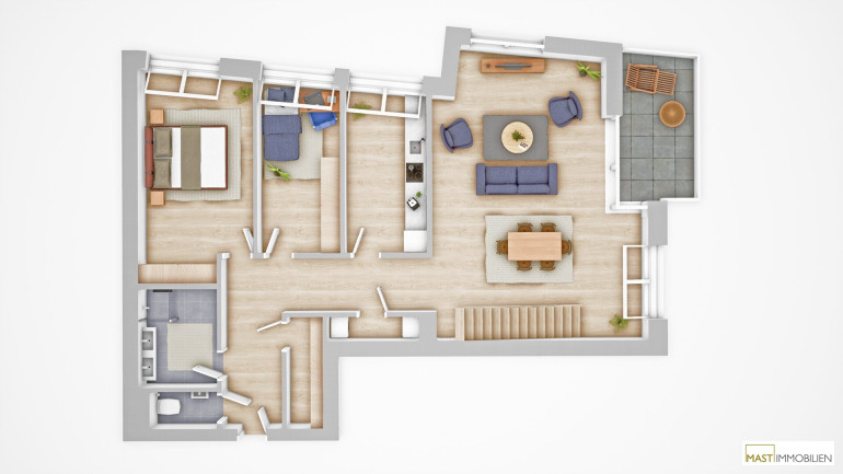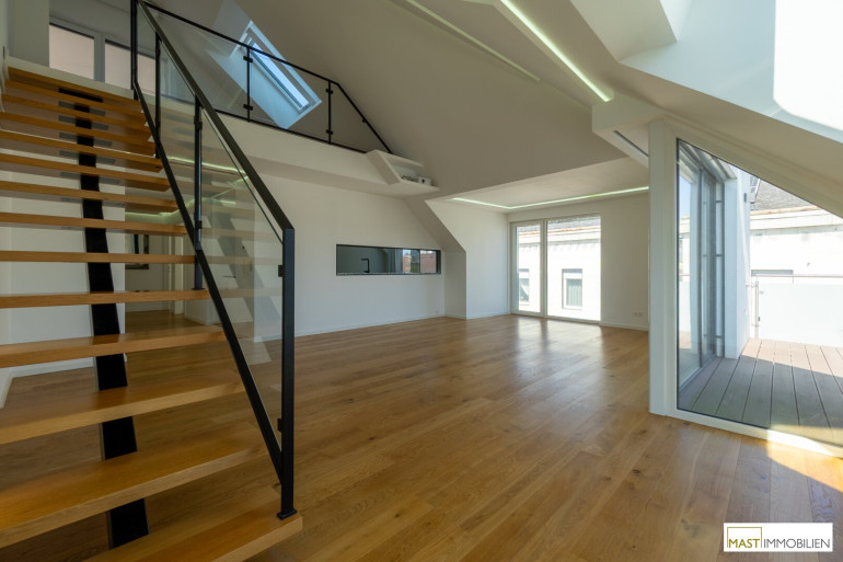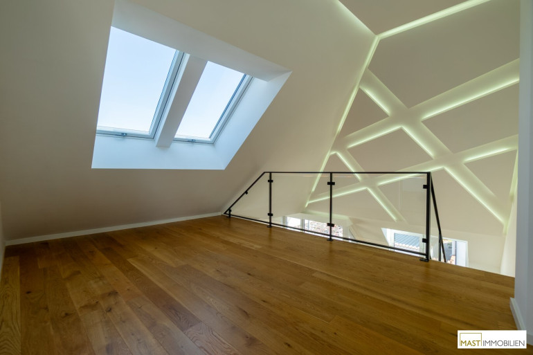 Diese traumhafte, lichtdurchflutete und verspielte Dachgeschoss - Wohnung verzaubert jeden Augenblick in unvergessliche Momente. Sei es den Sonnenuntergang nach einem langen und gestressten Arbeitstag auf der Dachterrasse zu genießen und den Abend mit einem Glas Wein ausklingen zu lassen oder die tollsten Geschichten mit Freunden und Familie im Wohnzimmer zu erleben!