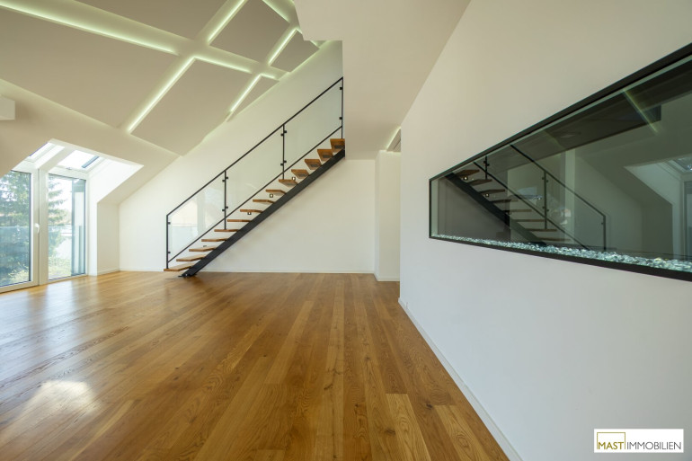 - exklusive indirekte Beleuchtung in Vorraum, Küche, Wohnzimmer sowie Galerie