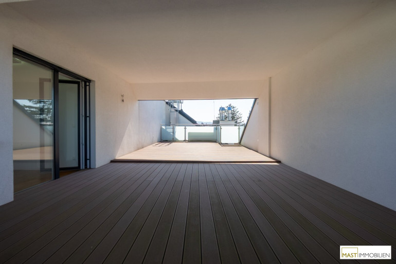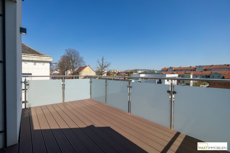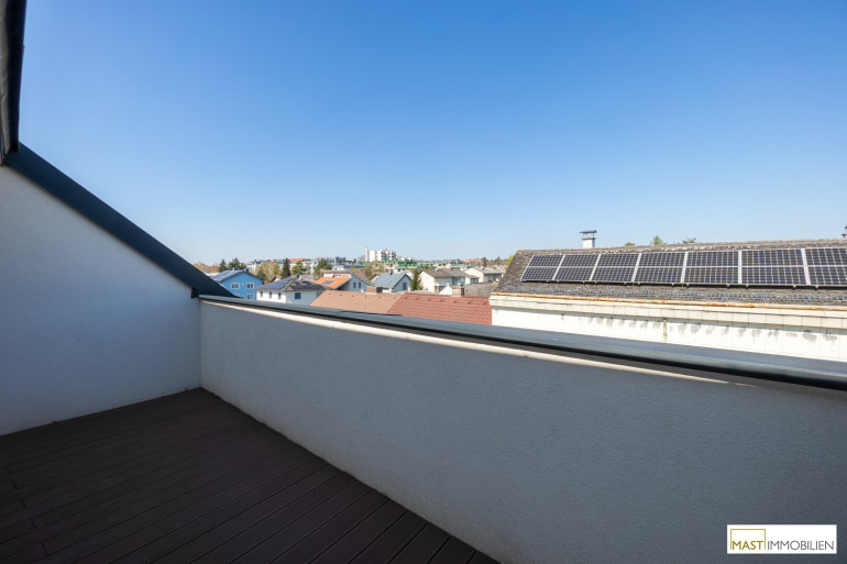- 55 m² große überdachte Dachterrasse mit Blick über Stockerau