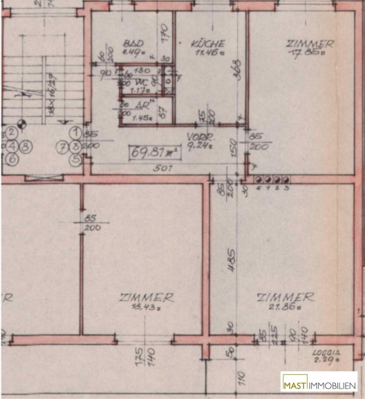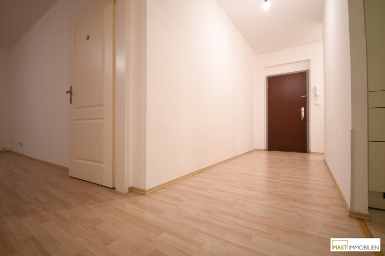 Nach Eintritt in die Wohnung gelangen Sie in ein großzügiges Vorzimmer mit ausreichend Platz für Ihre Garderobe, sämtliche Räume sind separat vom Vorraum aus begehbar. Der Abstellraum verfügt über einen WM-Anschluss und bietet auch ausreichend Platz für unsichtbare Gegenstände. Das Badezimmer wurde mit einer neuen Dusche & Waschbecken ausgestattet. Das separat begehbare WC ist nicht saniert da es in einem gepflegten Zustand ist. Die Küche wurde erst vor ca. 2-3 Jahren verbaut, die Warmwasser & Heizungsversorgung erfolgt über eine neue "VAILLANT" Therme und wurde seitens der Mieter jährlich gewartet. Wie auf dem Plan ersichtlich, sehen Sie dass das Schlafzimmer mit einer Fläche von knapp 18 m² sehr groß geschnitten ist. Das Wohnzimmer ist ebenfalls sehr geräumig und verfügt über eine Fläche von ca. 22 m² und bietet direkten Zugang auf die südlich ausgerichtete Freifläche (Loggia).
