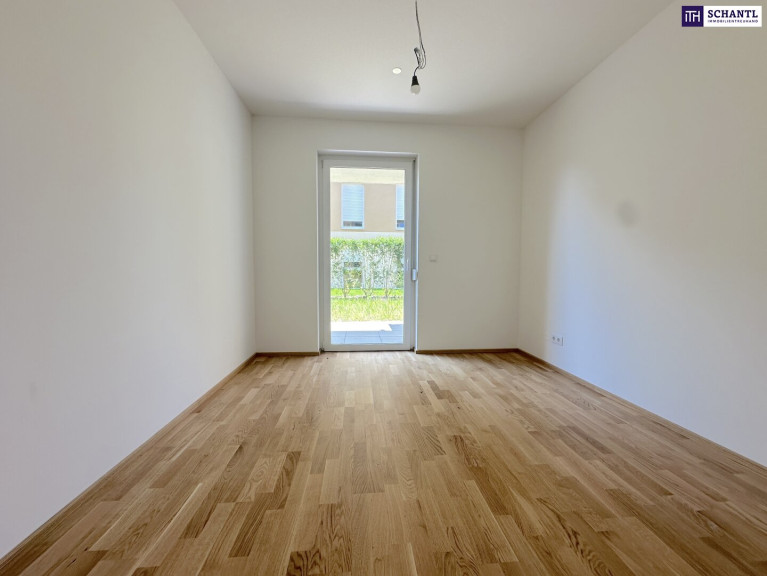 Zu den Highlights der Wohnung zählt ganz klar die fast 17 m² große Terrasse mit 50 m² Eigengarten dar, welcher ausreichend Platz für gemütliche Grillabende mit der Familie oder mit Freunden bietet.