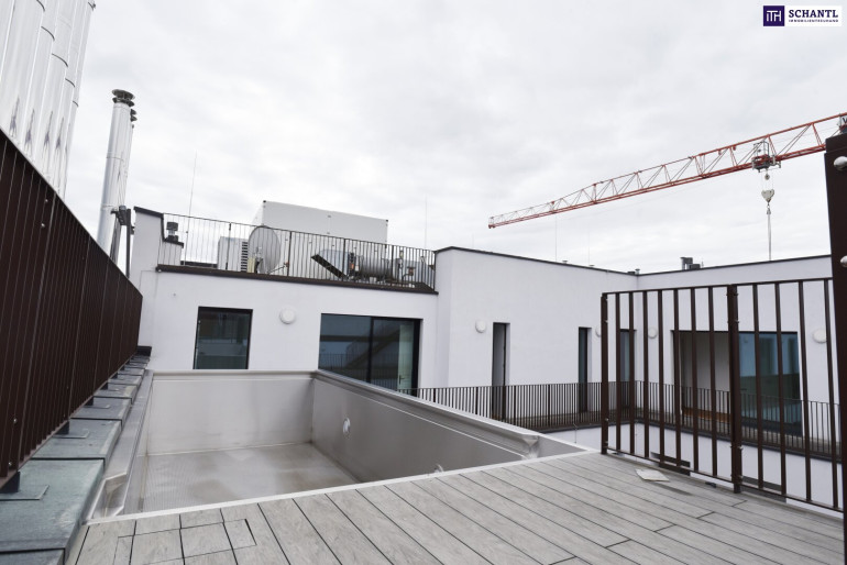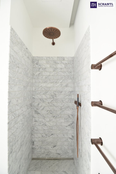 The expansive living area, featuring floor-to-ceiling windows, offers breathtaking views of the city skyline. The highlight of this penthouse is the spectacular 248 m² terrace, providing a 360-degree panoramic view over Vienna’s historic rooftops. It’s the perfect space for relaxation, stylish gatherings, or unforgettable sunsets. A private swimming pool with a counter-current system enhances the sense of luxury and relaxation in your home.