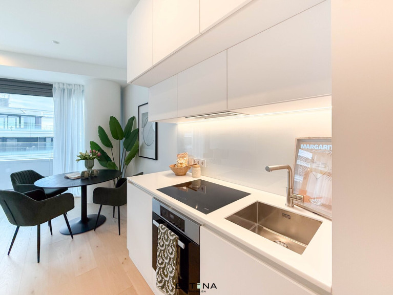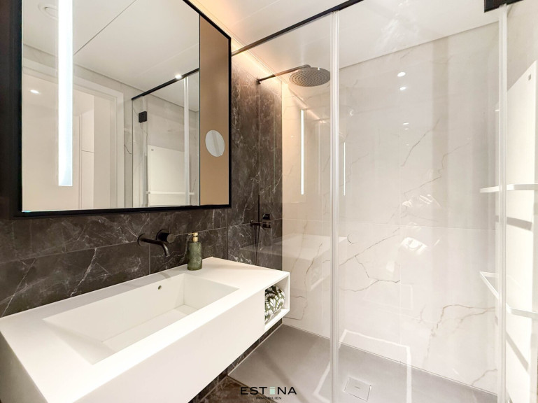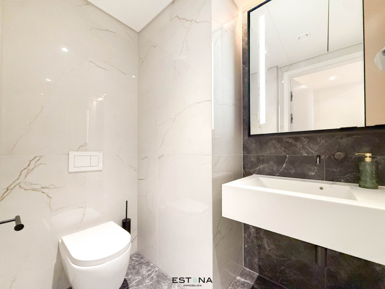 This exclusive apartment impresses with its light-flooded, modern design and the use of high-quality materials. The spacious balcony invites you to relax and offers impressive views. Ceiling heating and cooling ensures cozy warmth in winter, while temperature control in summer guarantees a pleasant indoor climate. The living comfort is complemented by an innovative smart home system that offers state-of-the-art technology for easy and efficient living. For drivers, a parking space can also be conveniently rented in the building's underground garage.