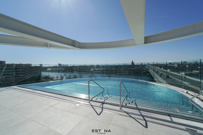 The Danube Flats in Vienna offer exclusive living in Austria's tallest residential tower (180 m), directly on the Danube. This one-bedroom apartment impresses with its high-quality furnishings and well-designed layout. Enjoy breathtaking views of Vienna's city center and St. Stephen's Cathedral and benefit from first-class amenities such as a fitness center, pool, concierge service, and common areas. The central location with excellent transport connections and nearby recreational areas combines urban luxury with a relaxed connection to nature. Ideal for discerning living!