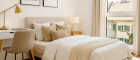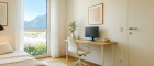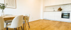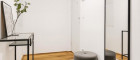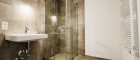 - Boden: Eichen-Echtholzparkett, Feinsteinzeug-Fliesen