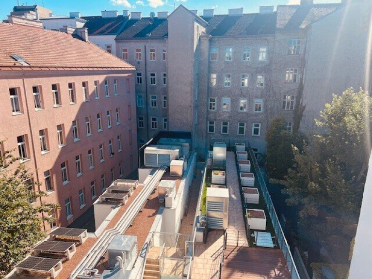 - rd. 6 m² Urban Gardening Fläche am Flachdach des Hofgebäudes