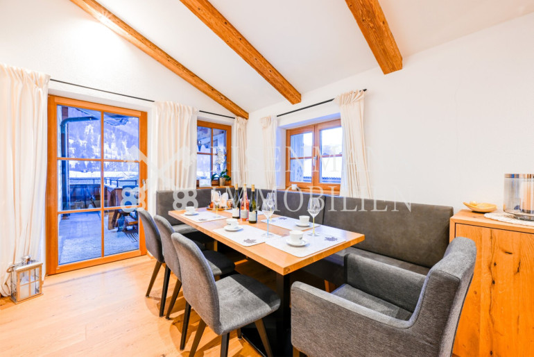 Willkommen in Ihrem neuen Zuhause am Fuße des Wilden Kaisers. Diese im Jahr 2020 aufwendig renovierte Wohnung vereint traditionellen Tiroler Charme mit modernstem Wohnkomfort.