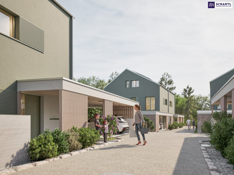 Die effiziente Holzbauweise hilft, die Herstellungskosten im Griff zu behalten und bietet eine solide Basis für leistbaren Wohnraum, ohne Abstriche bei Qualität oder Wohngefühl. Carports, überdachte Fahrradplätze, eigene Abstellräume, Pergolas und eine Luft/Wasser‑Wärmepumpe gehören fix zum Konzept und erleichtern die Umsetzung.