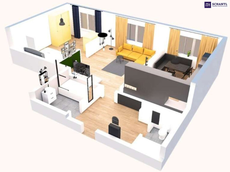 Ihre neue Wohnung im 2.Liftstock wird Sie restlos begeistern und teilt sich in einen Vorraum mit Platz für eine Garderobe, ein separates WC, ein sytlisches Badezimmer mit Badewanne, ein großzügiges und gemütliches Wohnzimmer, eine separate und voll ausgestattete Küche mit Platz für einen Esstisch, sowie ein kuscheliges Schlafzimmer.