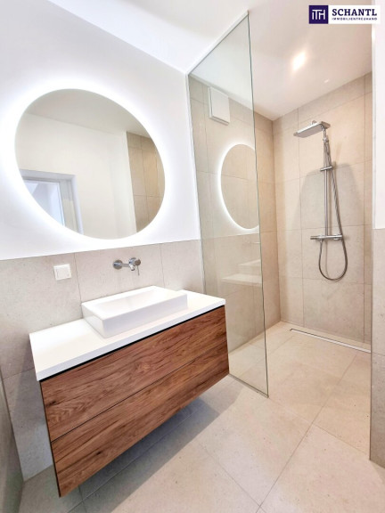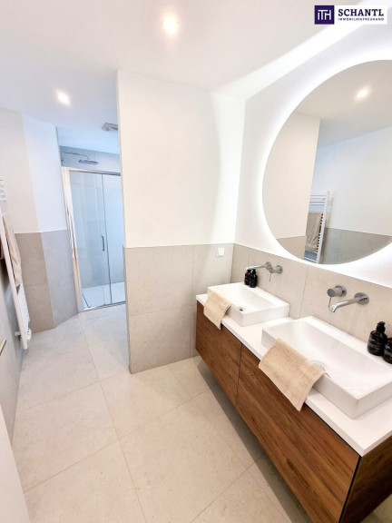 Ihre neue Wohnung in einer ruhigen Seitengasse wird Sie begeistern und teilt sich in einen geräumigen Vorraum mit genügend Platz für eine Garderobe, ein separates Gäste-WC mit Handwaschbecken, einen praktischen Abstellraum mit Waschmaschinenanschluss, ein komplett hofseitiges Schlafzimmer mit großem Badezimmer ausgestattet mit großer Walk-In Dusche, privatem WC, Fenster und Doppel-Waschbecken, ein weiteres Schlafzimmer mit eigenem Badezimmer mit Walk-In Dusche, sowie das Herzstück der Wohnung, ein riesiger Wohnbereich mit leicht abgetrenntem Küchenbereich und Zugang zur hofseitigen Sonnen-Terrasse.