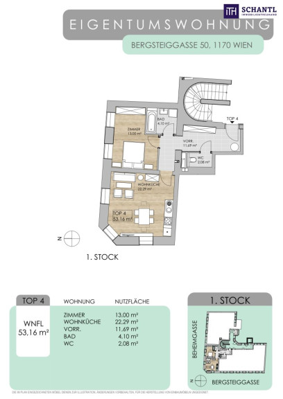 Wohnfläche: ca. 53,16m² + Kellerabteil: ca, 1,74m²