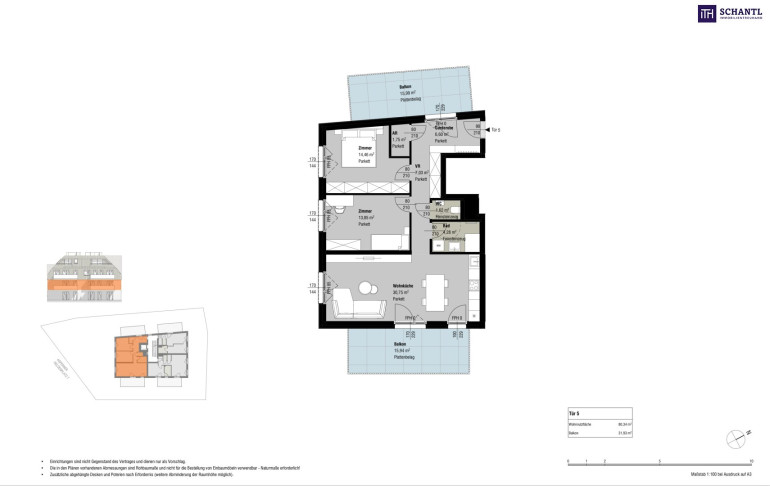 Wohnfläche: ca. 80,34m² + 1.Balkon: ca. 15,94m² + 2.Balkon: ca. 15,99m² + Kellerabteil