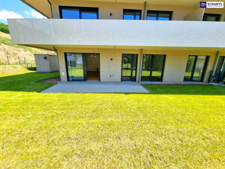 Ein Stück Natur – ganz für sich allein! Das perfekte Familienparadies! Geniale Neubauwohnung mit WOW-Effekt! Riesiger Eigengarten und Terrasse + 4 Zimmer + Grün wohin das Auge reicht + Luftwärmepumpe!